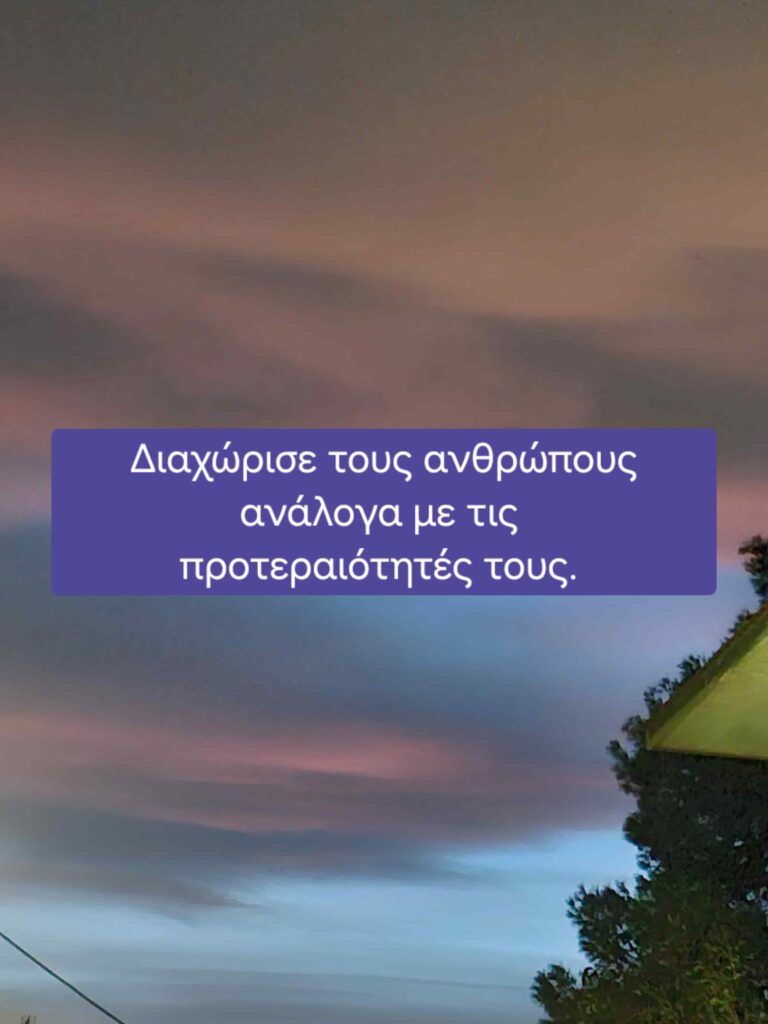 Διαχώρισε κι αντιμετώπισε διαφορετικά τους ανθρώπους με βάσει τις προτεραιότητές τους. Κάποιοι έχουν σκοπό την ανάπτυξή τους, άλλοι το “για πάντα”. Άσε τους ανθρώπους να δείχνουν αυτό που πραγματικά είναι για να μπορείς να αποφασίζεις ανάλογα. Μην προσπαθείς να μοιραστείς τις προσδοκίες σου με ανθρώπους που δεν ακούνε. Δέξου ότι η κατάρρευση μιας σχέσης δεν είναι αποτυχία αλλά μια ευκαιρία για κάτι καλύτερο. Η αποδέσμευση είναι στάση ζωής. Δες στο βίντεο πώς μπορεί να σε βοηθήσει αυτή η προσέγγιση στην καθημερινότητά σου.
